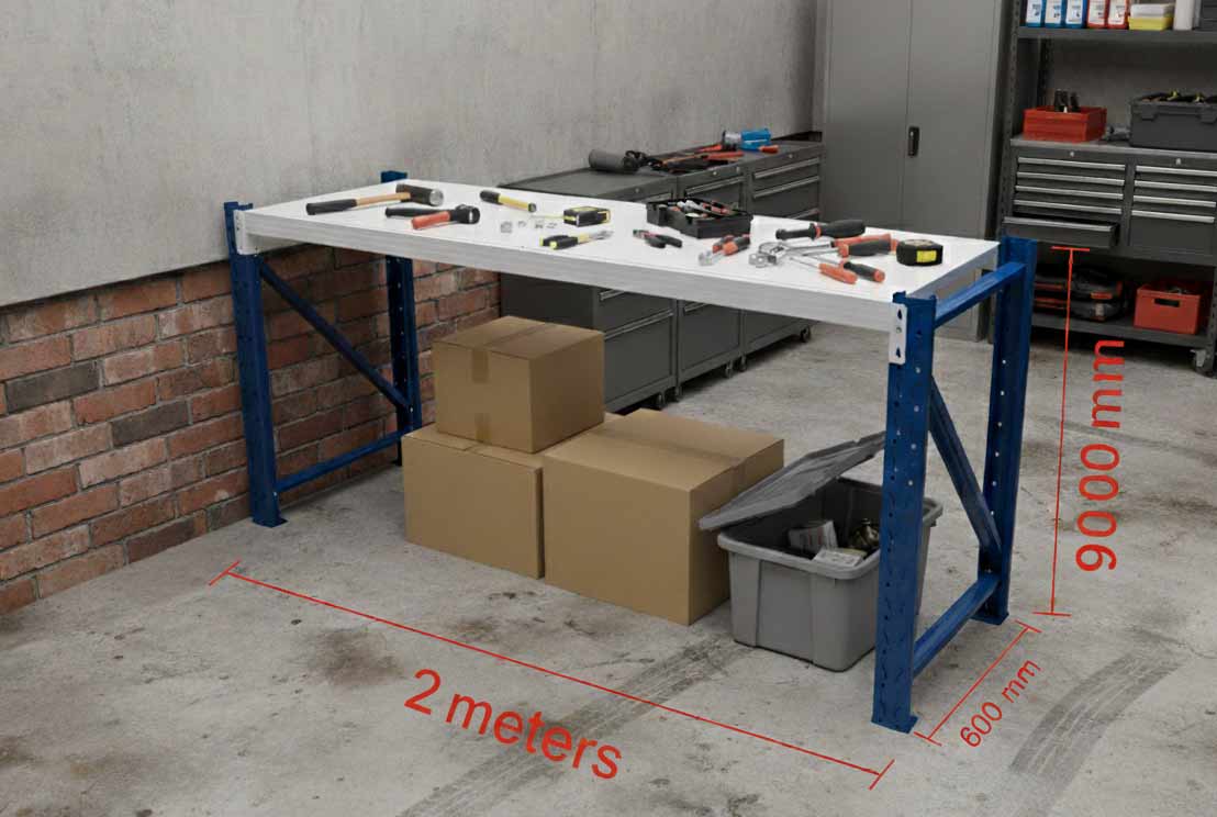 METAL WORKBENCH 2 METERS 900MM HEIGHT 600MM DEPTH